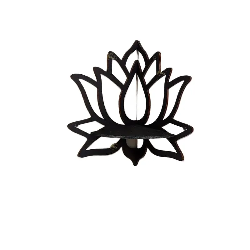Lotus Shaped Wall Shelf, A Modern & Versatile addition to your home decor. This Wooden Wall Shelf is designed to maximize space utilization while adding a touch of sophistication to any room. Whether you want to display small decorative pieces, candles or indoor plants, this shelf provides the perfect platform. With easy assembly using double tape or nails, this wall mounted shelf is a Practical & Stylish solution for organizing & beautifying your living space.
